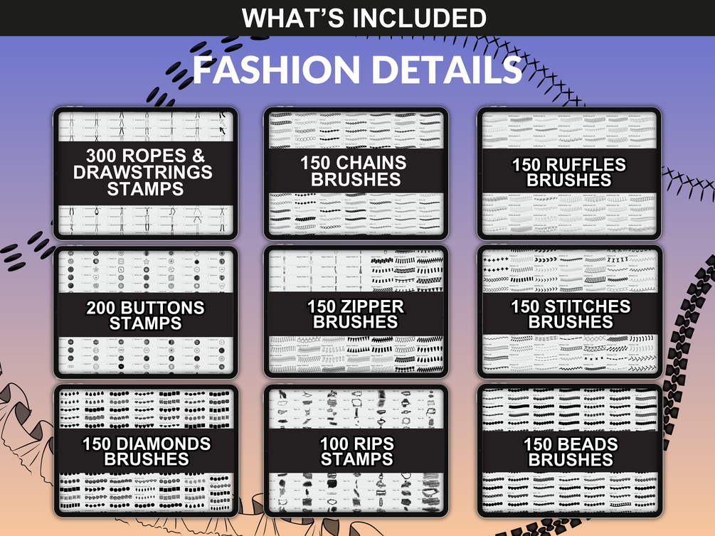 - Categories: Fashion Design, Texture Brushes, Artistic Brushes, Portait Stamps, Poses Stamps & more